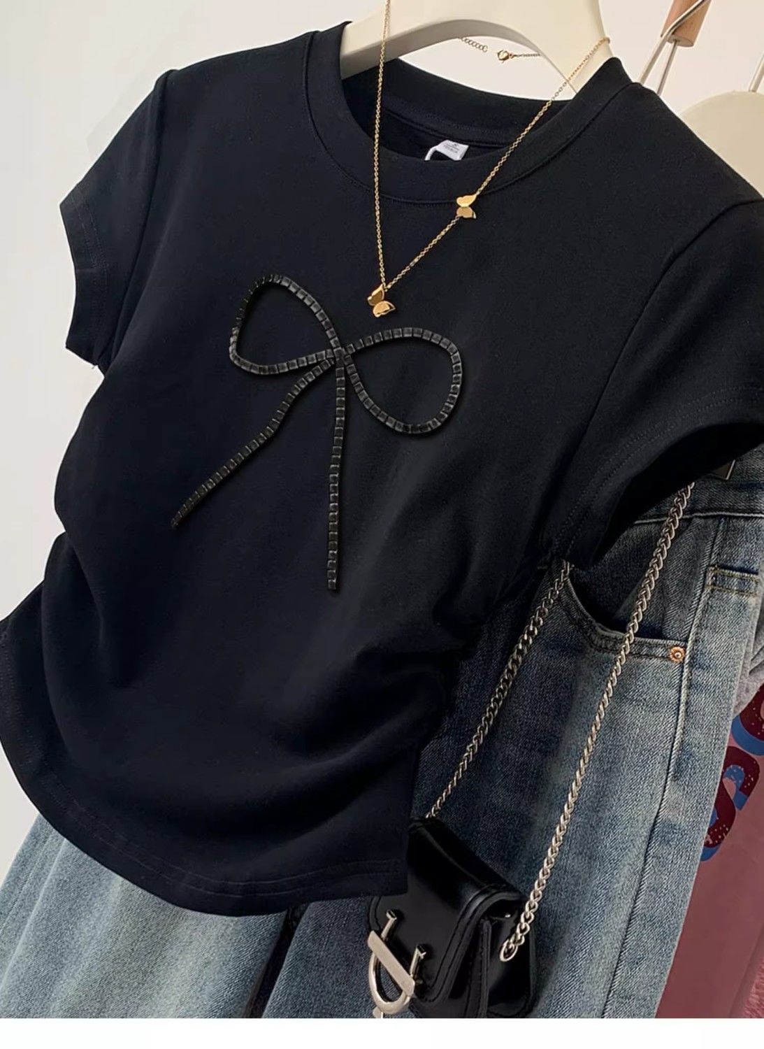 百搭純棉立體蝴蝶結修身顯瘦短袖T恤