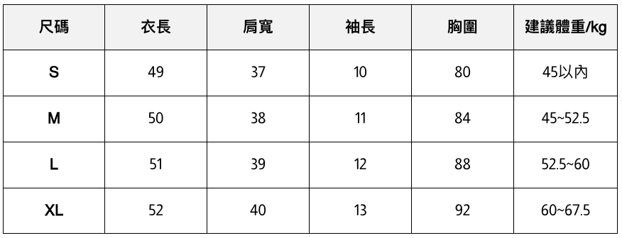 此處給出的參考尺寸表只是一個標準指南
