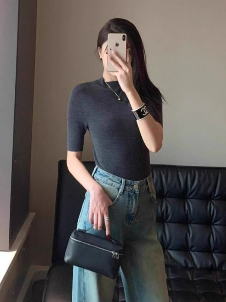 百搭顯瘦半高領五分袖內搭修身打底針織衫