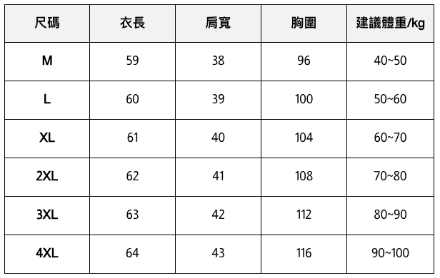此處給出的參考尺寸表只是一個標準指南