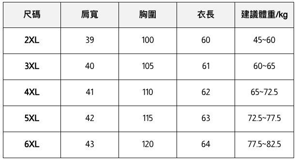 - 此處給出的參考尺寸表只是一個標準指南