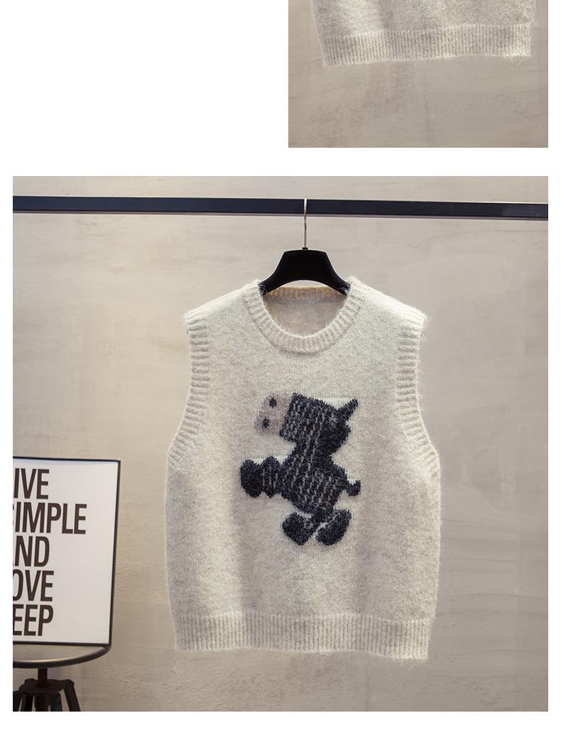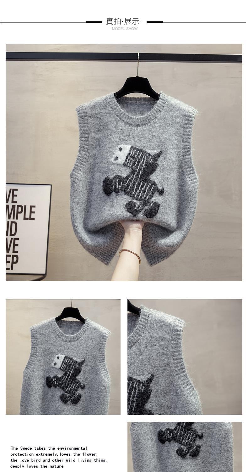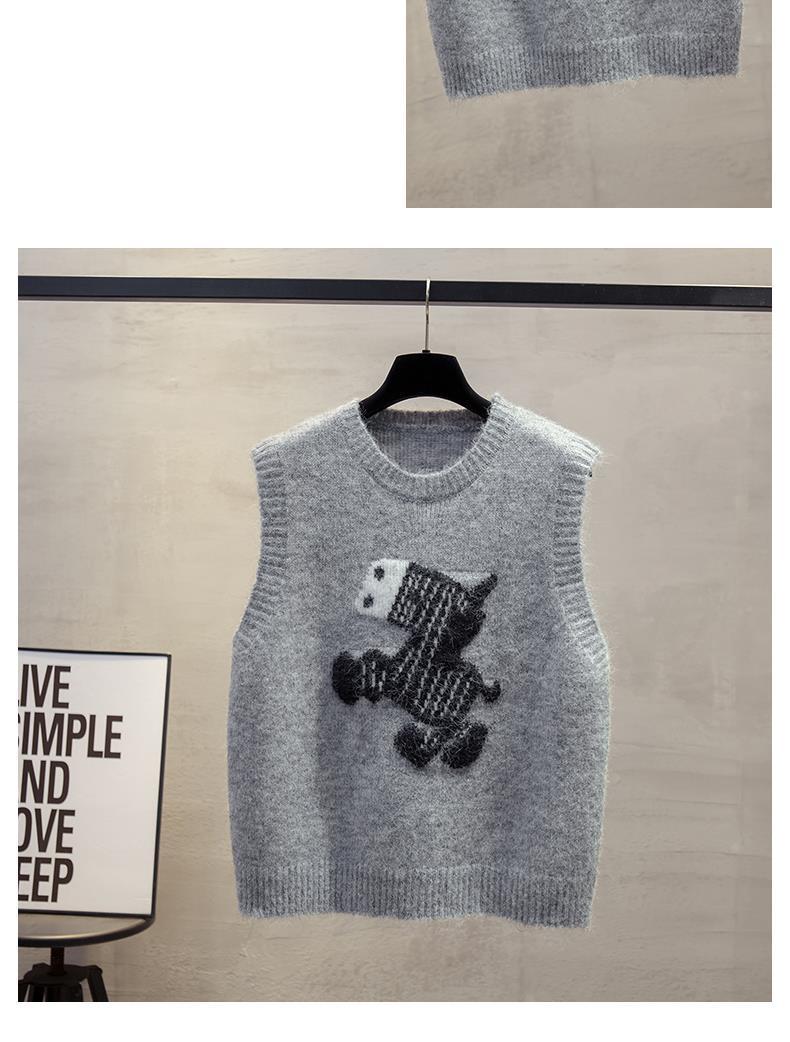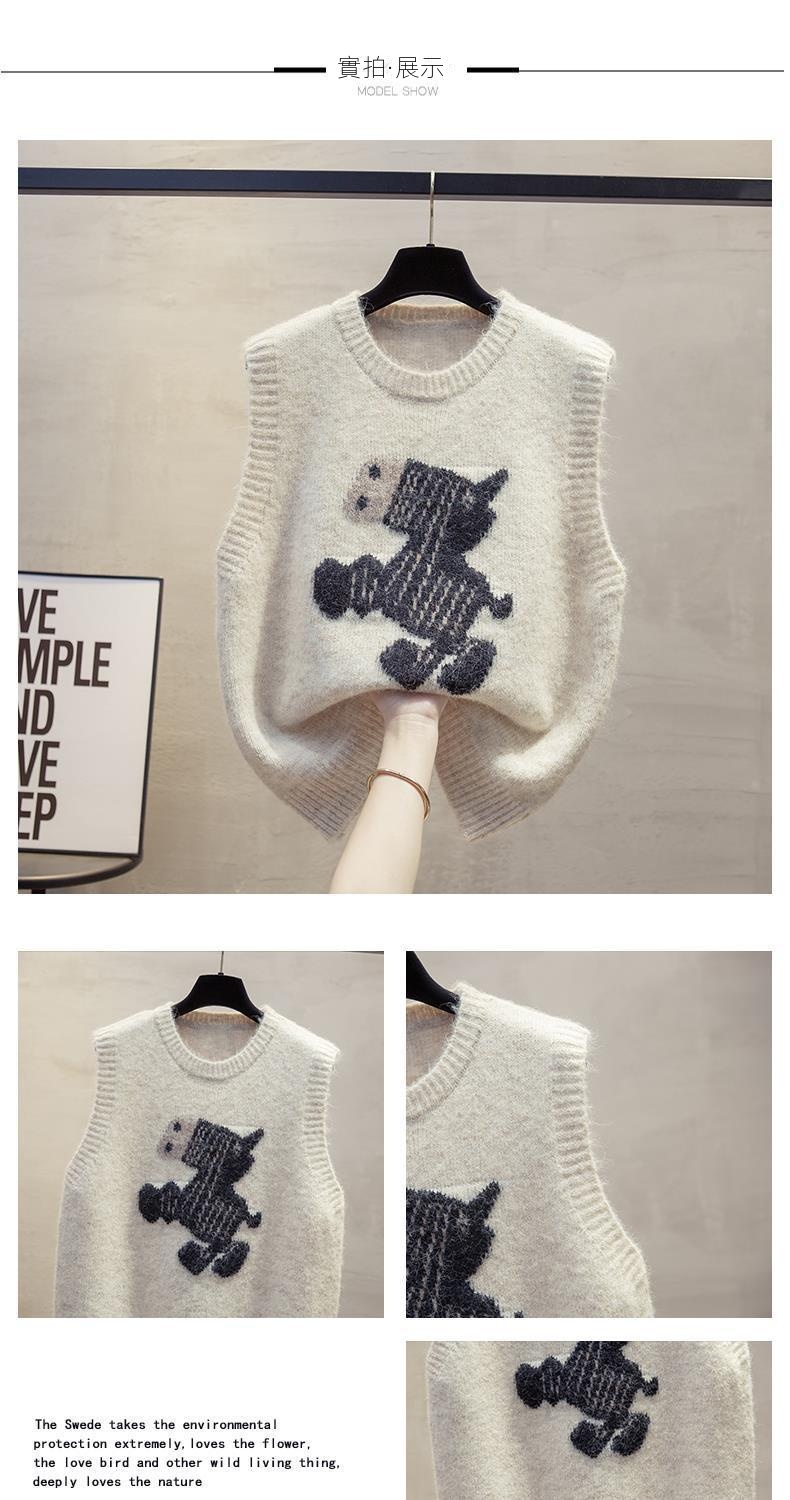 寬鬆疊穿肩圓領卡通圖案針織馬甲