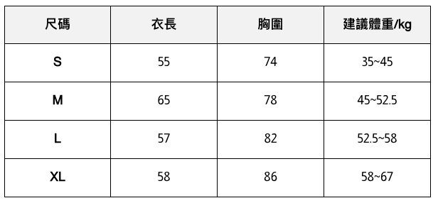 此處給出的參考尺寸表只是一個標準指南