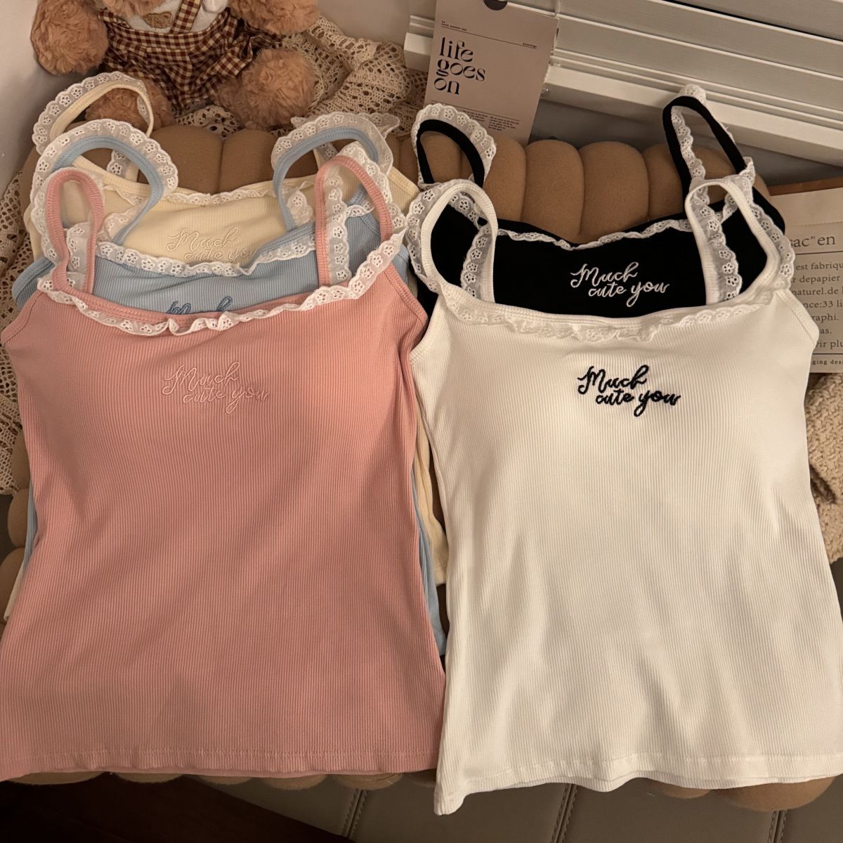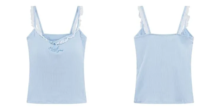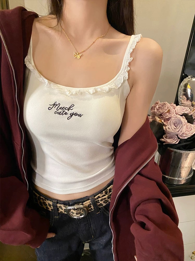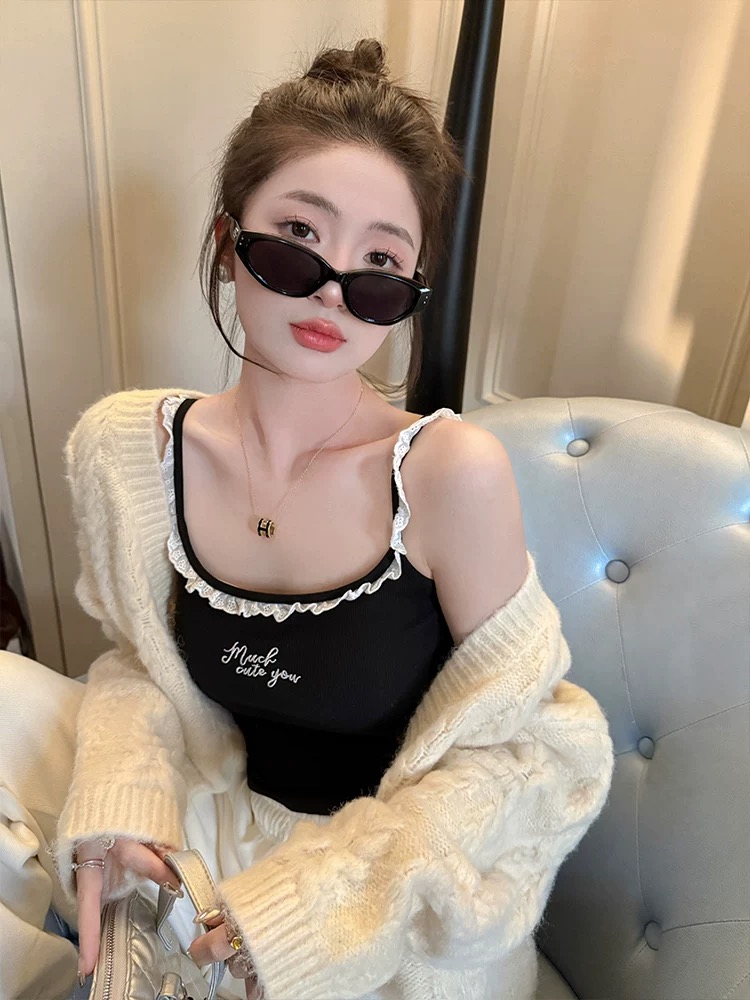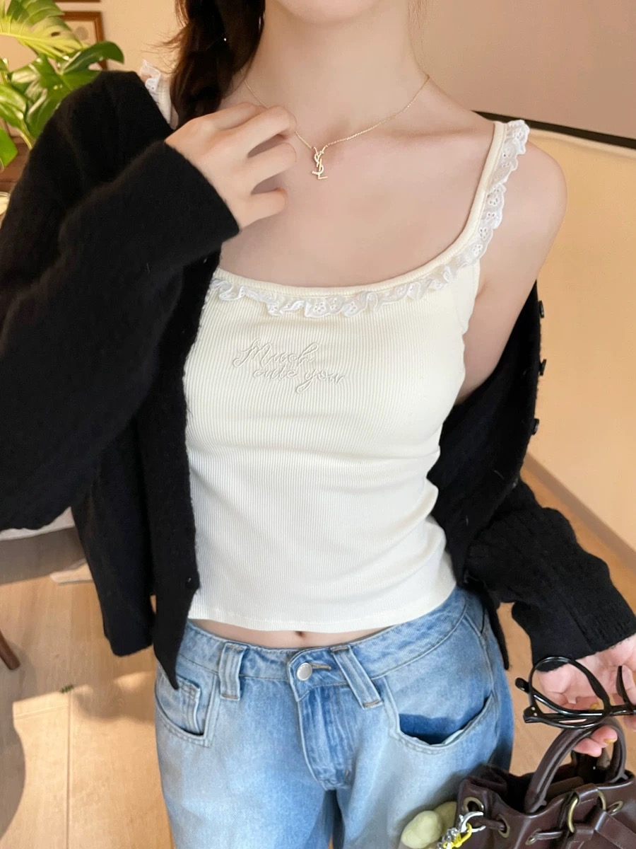 純欲蕾絲刺繡帶胸墊美背設計感顯瘦吊帶背心