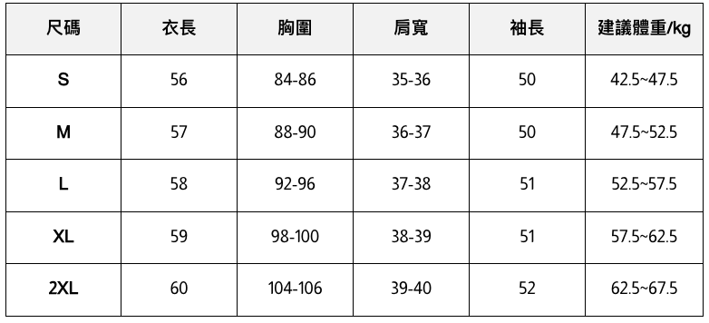 此處給出的參考尺寸表只是一個標準指南