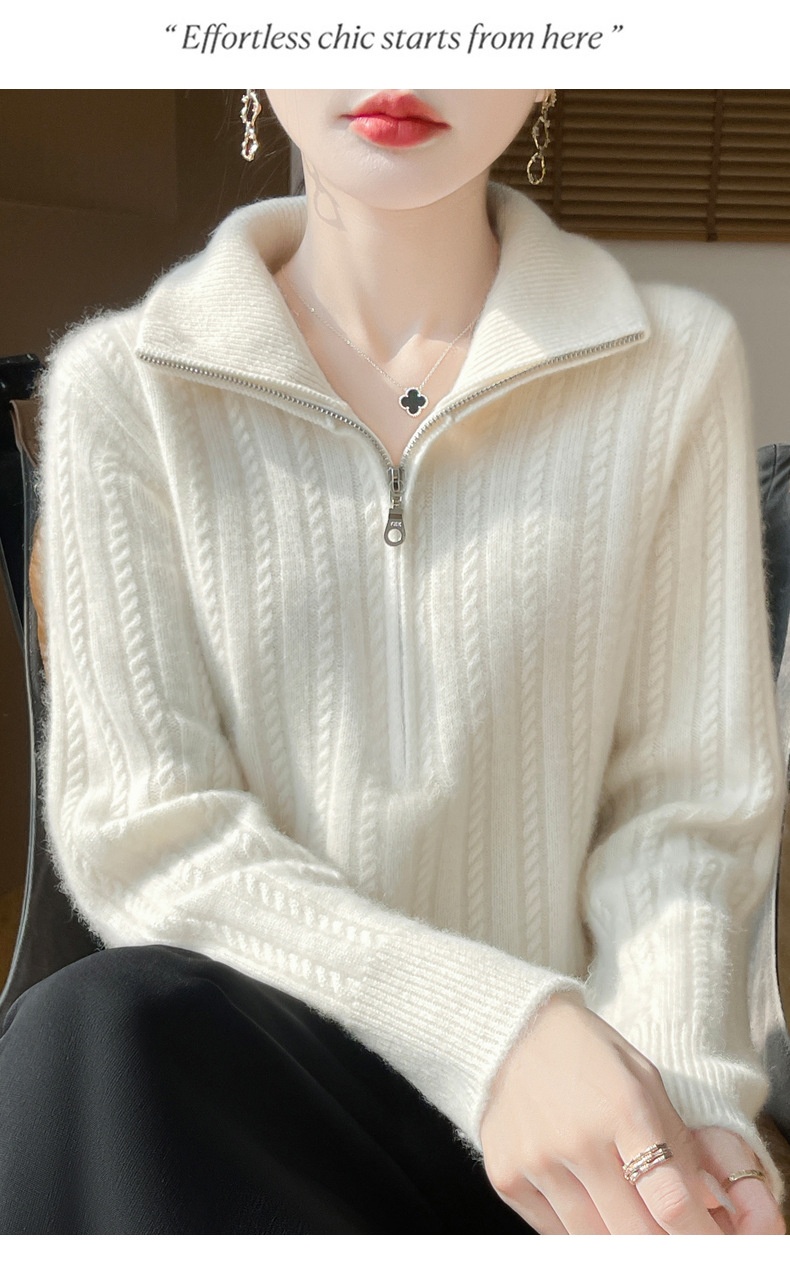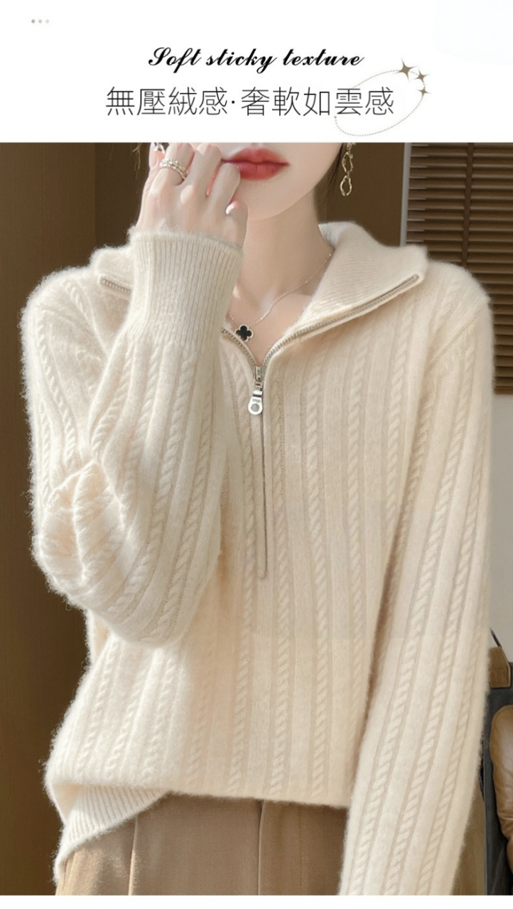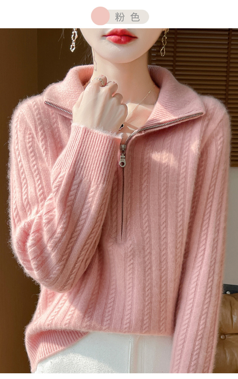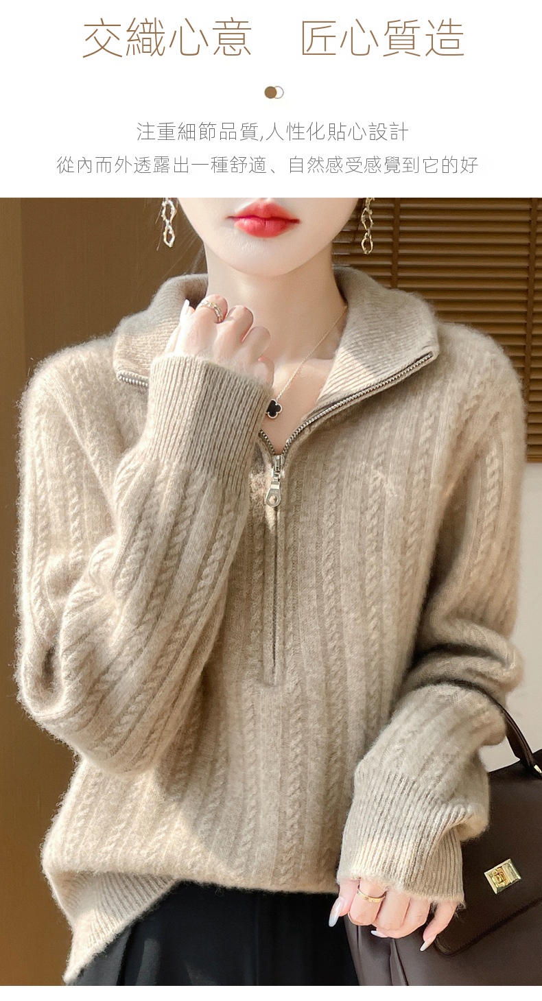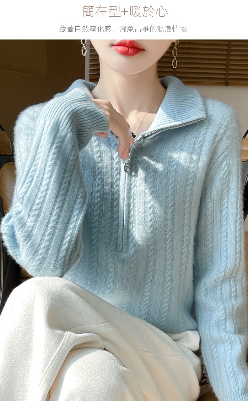 百搭顯瘦半拉鍊素色麻花針織毛衣