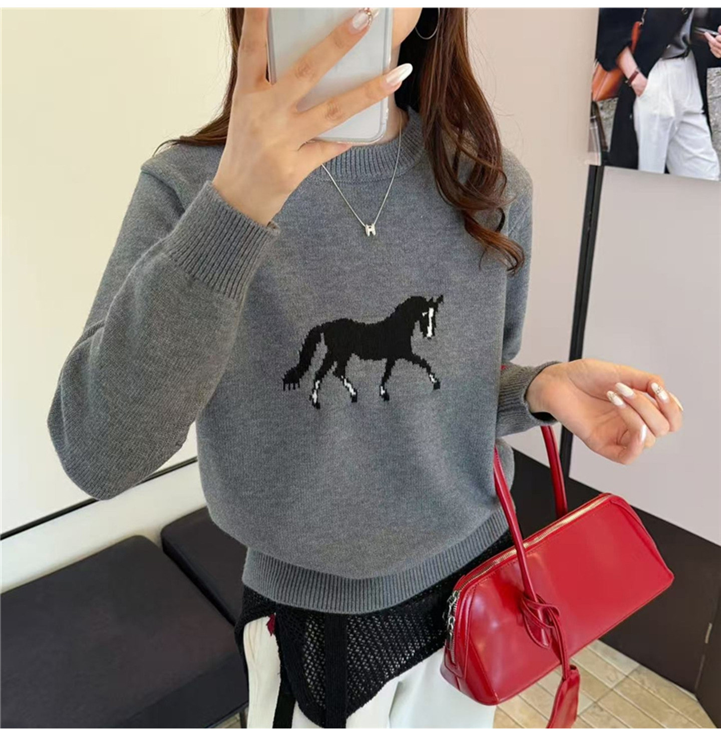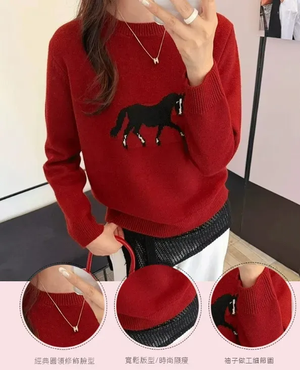 【限定款】卡通小馬提花減齡圓領針織衫